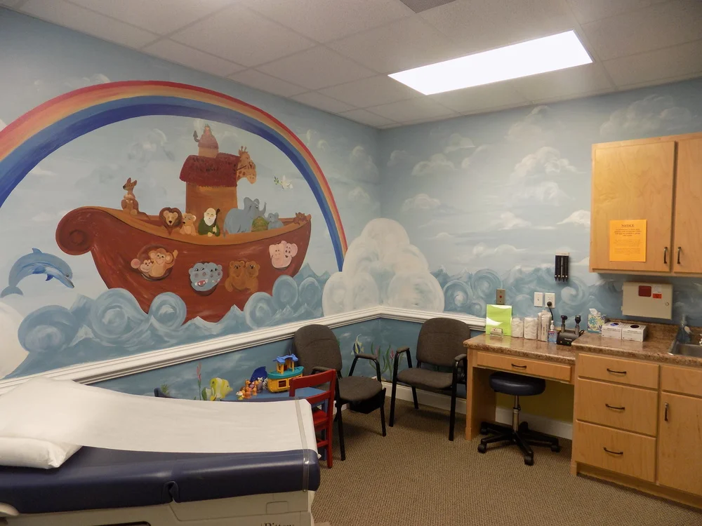 ALSO, OUR PATIENT ROOMS ARE DESIGNED TO BE COMFORTABLE AND PRIVATE AS WELL AS STIMULATING AND PLEASING TO BE IN, WITH A ROOM THEMED AFTER NOAH'S ARK FOR KIDS AND OTHERS THEMED AFTER DR. MILLER'S PERSONAL INTERESTS: GOLF, HUNTING AND FISHING, AND ERK RUSSELL, A FORMER FOOTBALL COACH AND IDOL AT GEORGIA SOUTHERN UNIVERSITY.